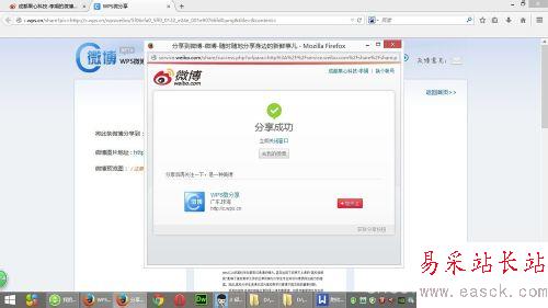 第三步:在下拉框中選擇“分享到微博”,而后在網頁端就可以看到“WPS微分享”。