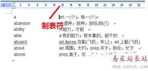 5、鼠標指針移到制表符,按住左鍵向左調整制表符。
