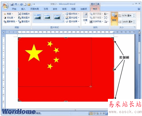 3、將鼠標移至圖片四角控制點(或各邊中間控制處,按住左鍵推拉至合適位置后,松開鼠標即可