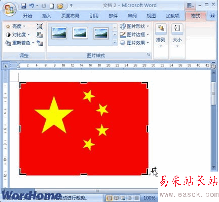 第2步,圖片周圍出現8個方向的裁剪控制柄,用鼠標拖動控制柄將對圖片進行相應方向的裁剪,同時可以拖動控制柄將圖片復原,直至調整合適為止。