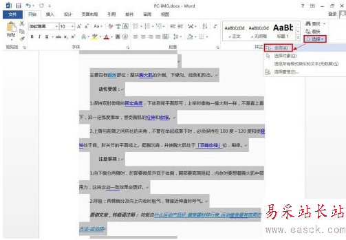 1、點(diǎn)擊【選擇】---【全選】,或按鍵盤的「Ctrl+A」,選取整篇文章。