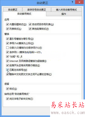 第3步,打開“自動更正”對話框,并切換到“自動套用格式”選項卡。取消或選中相關選項,并單擊“確定”按鈕即可,如圖3所示。