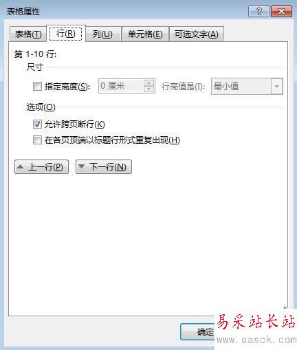 ②在表格屬性界面,切換到行標(biāo)簽,可以看到有多少行了。