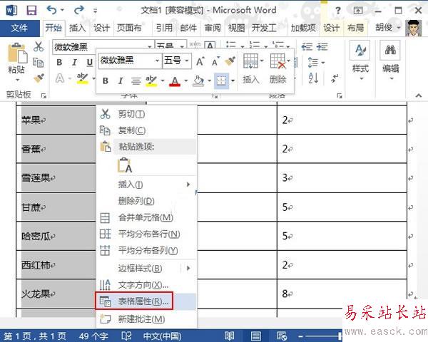 ①鼠標(biāo)右鍵單擊表格,從彈出的菜單中選擇表格屬性。