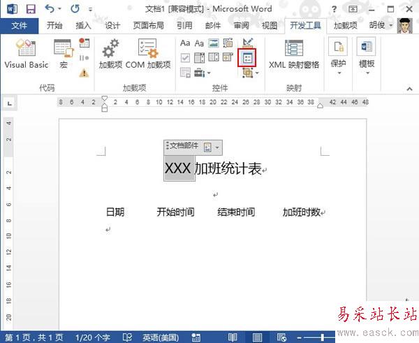 ①首先,啟動Word2013,鼠標選中XXX,單擊菜單欄--開發(fā)工具,點擊里面的構建基塊庫按鈕。