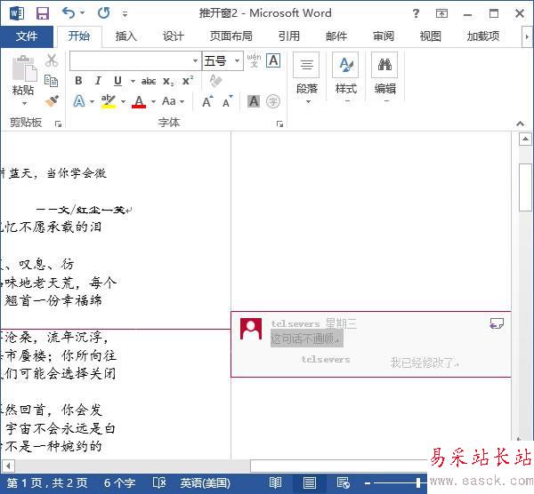 1、用Word2013打開一篇文檔,并選中我們需要刪除的批注,單擊鼠標右鍵,在彈出的快捷菜單中執行“刪除批注”命令。