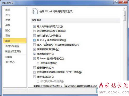 圖2 取消“用Ctrl+單擊跟蹤超鏈接”復選框