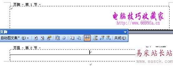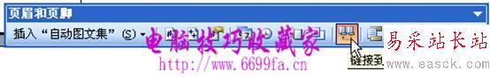 4、單擊“頁眉和頁腳”工具欄上的“鏈接到前一個”按鈕,關閉頁眉之間的鏈接,如圖: