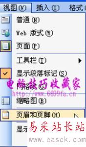 3、執(zhí)行“視圖/頁眉和頁腳”命令,打開“頁眉和頁腳”工具欄,如圖: