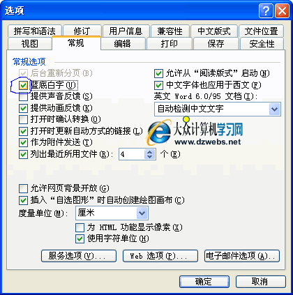 上圖中,切換到“常規”選項卡,然后,在“常規選項”的下面,找到“藍底白字”選項,在其前面打上一個√勾,最后點擊“確定”按鈕退出即可.
