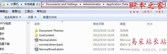 步驟三、現(xiàn)在將一些隱藏文件顯示出來(lái)了,在打開(kāi)的資源管理器上面的地址欄上復(fù)制粘貼“C:Documents and SettingsAdministratorApplication DataMicrosoftTemplates ”這樣一個(gè)地址。然后敲回車(chē)鍵,打開(kāi)這個(gè)文件路徑。如圖所示: