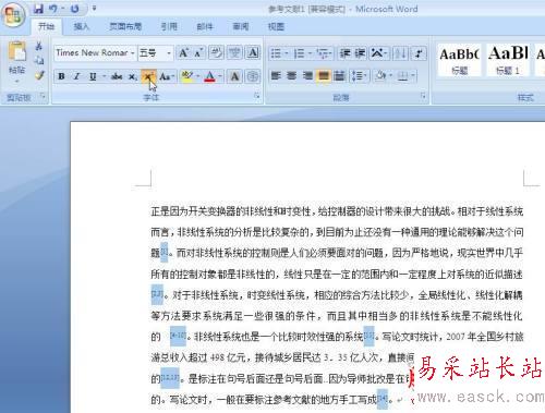 如果參考文獻比較多,到正文中挨個手動修改數字為上標,是費時費力的,其實可以通過“查找替換”來批量完成,下面以在Word2007中的處理來介紹設置方法,使用Word2003或者WPS2009文字的朋友也可以使用相同的辦法來完成處理。