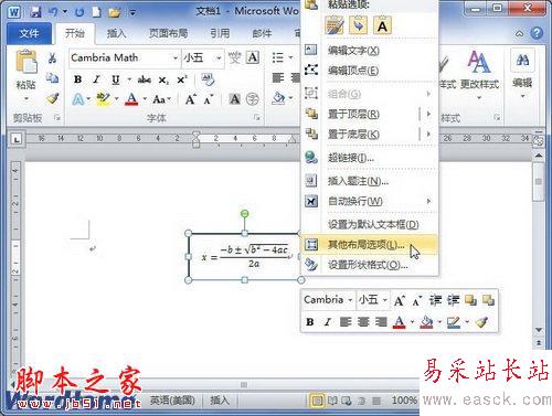 由于公式屬于嵌入式對象,因此它不能像圖片或剪貼畫一樣設置文字環繞方式,從而能夠在Word2010文檔中自由移動。不過用戶可以將公式放置在文本框中,從而間接設置其文字環繞方式,操作步驟如下所述: