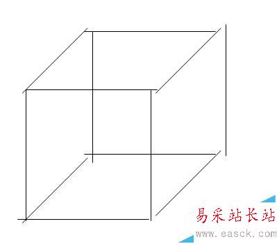 1、我們先分析正方體的組成,它是由四個橫線、四個豎線、四個斜線組成。那么我們先準備好這12條線。