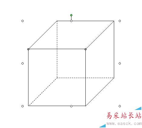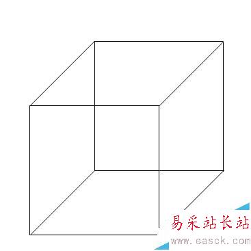 1、分析正方體的組成,可以由一個正方形、兩個平行四邊形、一條橫線、一條豎線、一線斜組成。方法同上面一個,先畫出大致的圖形,然后在進行微調,最后把里面三條線設置成虛線就可以了。