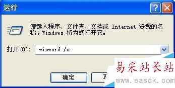 1、依次點擊開始菜單—>運行—> ,在運行框里輸入 winword /a(注意:winword 和 /a 之間要有空格!),即可把word恢復成剛安裝完成時的默認設置,如下圖所示: