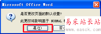 3、點擊“默認”后,將彈出“是否更改頁面的默認設置”提示,點擊“是”,即可,如下圖所示: