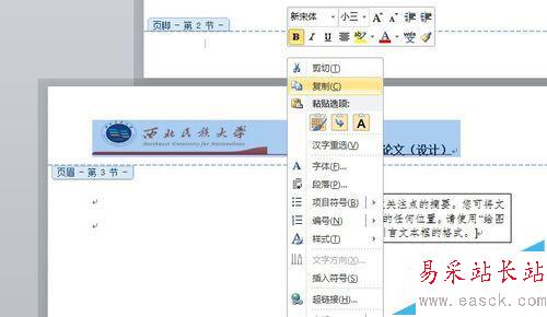5、然后將原有的頁眉剪切,粘貼到插入的簡單文本框中,如下圖所示!
