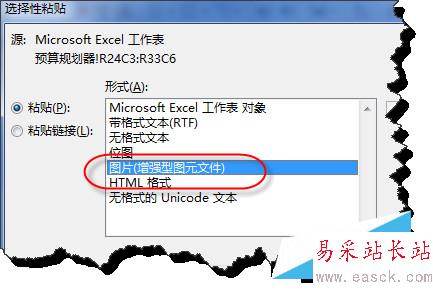 在“選擇性粘貼”對話框中,如圖選擇“圖片(增強型圖元文件)”