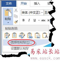 回到WORD中,在“文件”選項卡中,如圖選擇“選擇性粘貼”