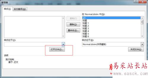 然后點擊出現的打開文件按鈕,選擇已設定好樣式的文檔(即你需要當作樣式模板的文檔,默認過濾模板格式的文件,可以在列表中選擇過濾word文檔)。