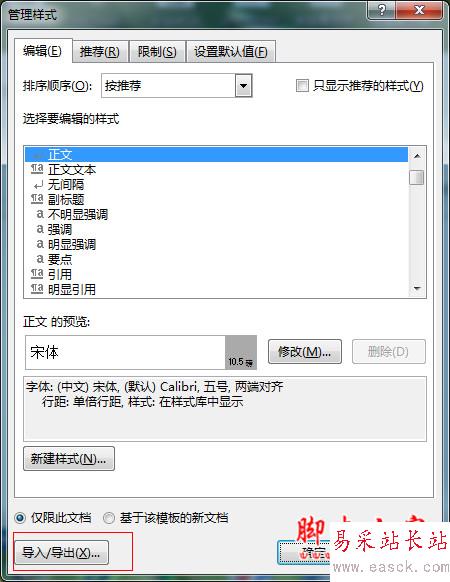 2、在打開的樣式管理界面,點擊導入導出按鈕
