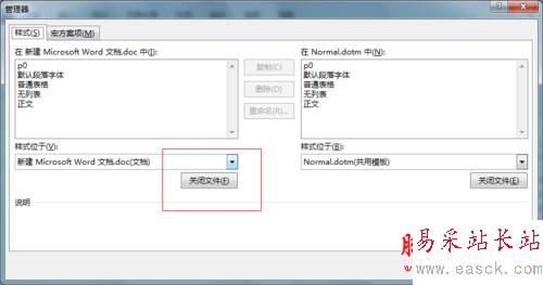 3、在樣式導入導出界面,點擊需左側的關閉文件按鈕。關閉當前文件已存在的樣式模板。