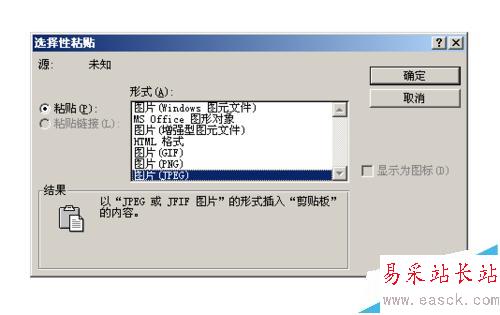 有時我們點擊選擇性粘貼之后沒有“圖片(JPEG)”選項,這時我們隨便選一項點擊確定,然后復制粘貼的圖片,再選擇“選擇性粘貼”。