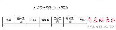 2、根據Excel工資表的內容在Word中創建一個如下圖所示的基本工資條。