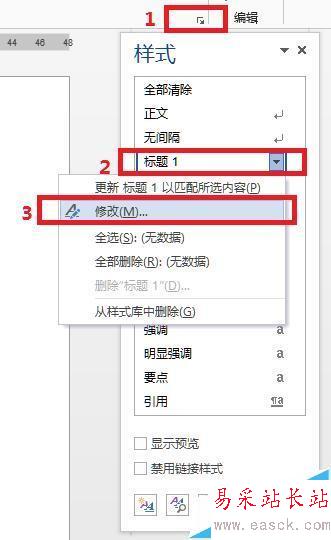 修改默認的樣式。使用之后發(fā)現(xiàn),word自動給出的樣式可能并不符合我們論文排版的要求,例如某一級別字體過大,或者段前間隔過大等。此時我們可以通過設置默認樣式的方式來改變。按照圖中所示操作調(diào)出修改樣式對話框。