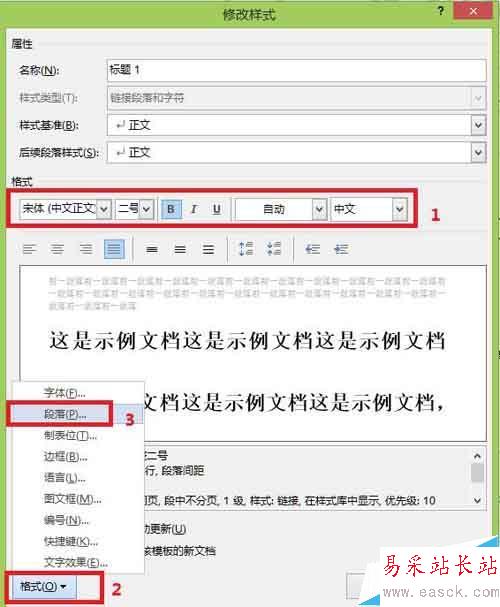 設置樣式的字體字號。在修改樣式對話框中,選擇自己需要的字號,以及中西文字體,完成字體設置,這個方法可以保證以后的文檔編輯中,不需要文檔編輯完返回來修改全文中英文內(nèi)容的字體(這是很多人遇到過的難題)。