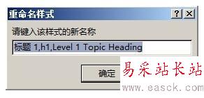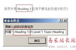 5、回頭看一下錯誤提示。本例中缺失的是「Heading 1」樣式。而本應(yīng)用于頁眉的樣式中,沒有「Heading 1」這個名稱所以就在名稱里添加上「Heading 1」