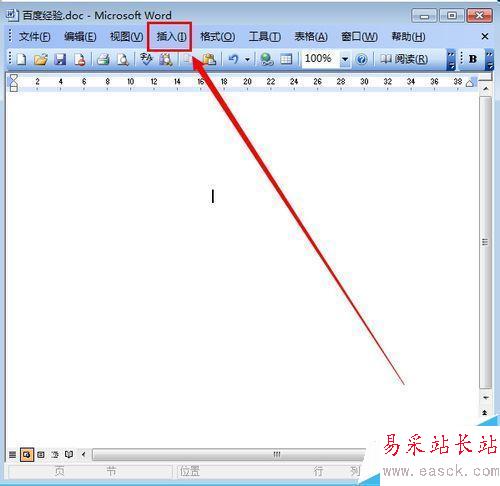 2、在文檔的菜單欄里點(diǎn)擊“插入” 如圖