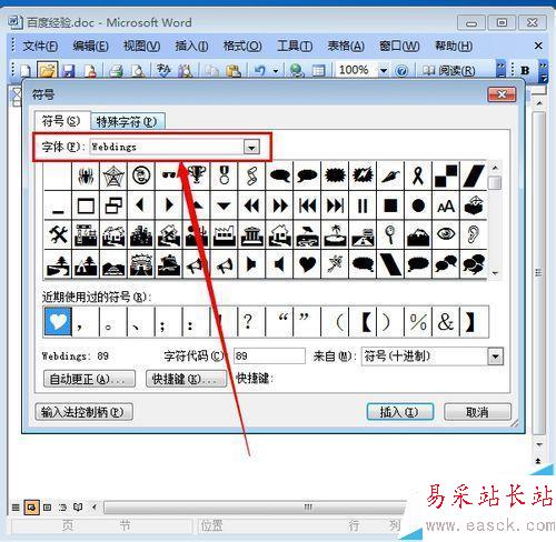 6、然后找到 心形圖標(biāo) ,點(diǎn)擊“插入” 關(guān)掉設(shè)置窗口 如圖