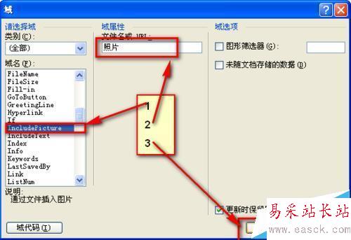 18、按下圖序號順序設置要插入的照片域,最后單擊確定