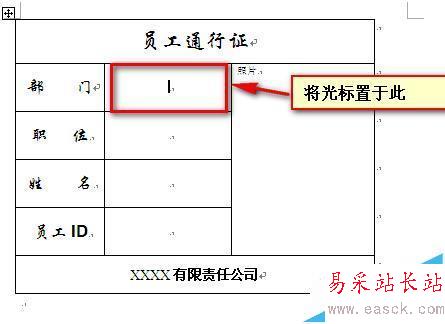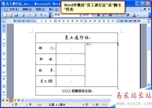 3、WORD中做好員工通行證或胸卡樣式表,如圖所示
