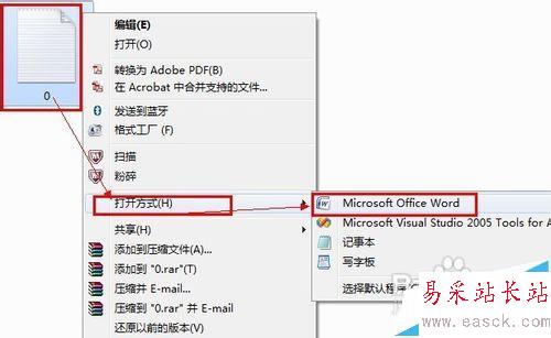 2、右擊文字素材文件,選擇“打開方式”,然后選擇“Microsoft Office Word”。如果找不到此項,可以先打開Word,然后選擇打開,找到文字素材文件后雙擊:
