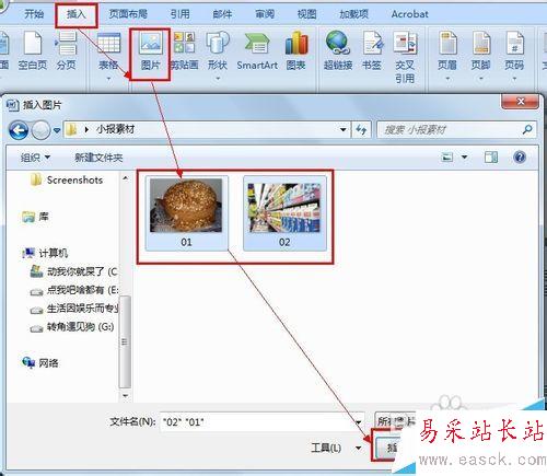 10、依次單擊“插入,圖片”,然后選擇準備好的素材圖片,單擊“插入”: