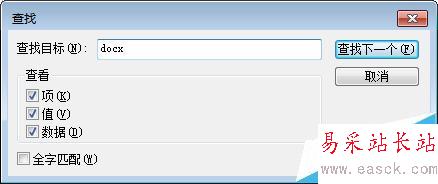 3、首先,我們利用CTRL + F 快捷鍵,查找“docx”的位置,當(dāng)然這里也可以自己下拉查找。