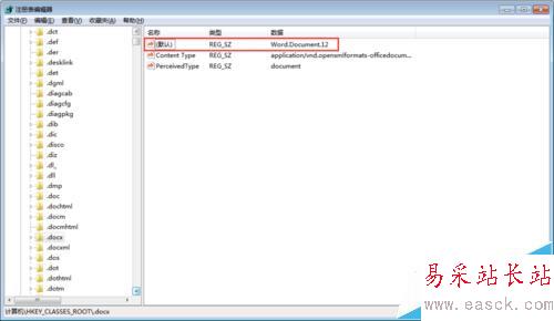 5、雙擊(默認(rèn))一項(xiàng),將其改為 Word.Document.12。