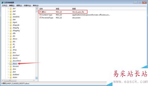 4、找到之后,不用展開目錄。我們可以看到右側(cè)有一個(默認(rèn)),此時的默認(rèn)值為Word_auto_file,如果不是該值也不要緊。