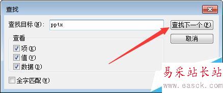 9、如果在注冊表中使用CTRL + F查找時,沒有找到相應(yīng)的目錄,請注意圖中標(biāo)出的“查找下一個”。CTRL + F只能查找該位置后的內(nèi)容,請選擇HKEY_CLASSES_ROOT目錄中的第一個目錄后,重新查找。
