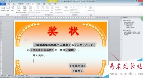 2、然后打開word文檔,新建一個獎狀文檔,如果可用模板里沒有獎狀模板,可以下載(小編里的模板是下載好了的),如果不滿意獎狀中的字體設計,可以自行更改,而如果是想合并邀請函,也可以下載邀請函,或者是自己設計邀請函