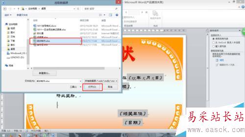 1、首先我們要用excel表格做一份獎項名單,包括姓名、獎項、日期等,只要編輯獎狀中需要填寫的項即可,同時記得在制作表格的時候記得做表頭,方便我們使用郵件合并時做選擇,完成之后保存在桌面