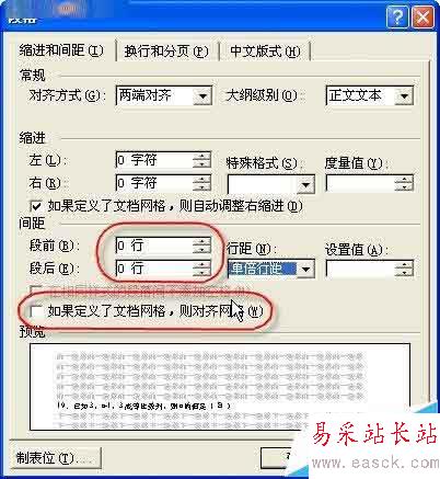 2、局部調(diào)整方法。在正篇文章中如果你想只對(duì)其中的一部分內(nèi)容進(jìn)行類似行距的調(diào)整,可以按下面的步驟進(jìn)行:選中要進(jìn)行操作的那些行,依次單擊菜單命令“格式→段落”,打開“段落”對(duì)話框;單擊“縮進(jìn)和間距”選項(xiàng)卡,將間距的“段前”和“段后”都調(diào)整為“0行”;將“如果定義了文檔網(wǎng)格,則對(duì)齊網(wǎng)格”復(fù)選項(xiàng)前的小勾去掉,如圖2所示,最后單擊“確定”按鈕即可。