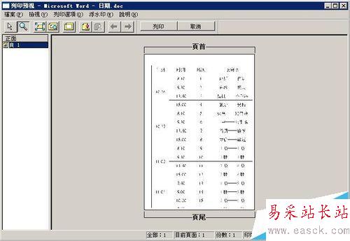 7、選擇完畢后我們點擊確認,然后直接點擊打印按鈕,打印機就直接進入到打印預覽狀態,從下圖可以看到表格內容已經自適應到A4紙張了,同樣的如果是A4要打印成A3是相反的過程;