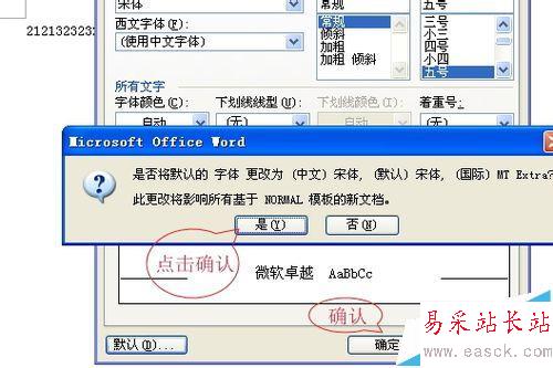 3、點擊默認-〉彈出對話框-〉點擊確認完成。
