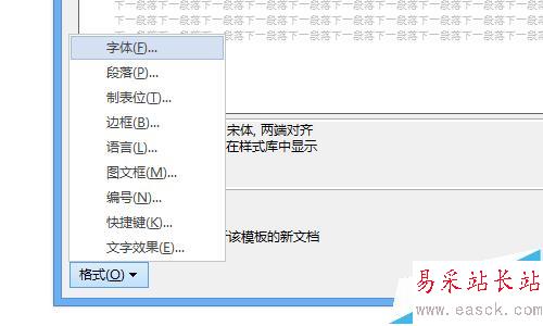 3、點擊“格式”-->“字體”,打開字體設置對話框