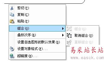 三、再右鍵選擇已經組合的流程圖,查看組合選項里面已經出現了“取消組合”選項
