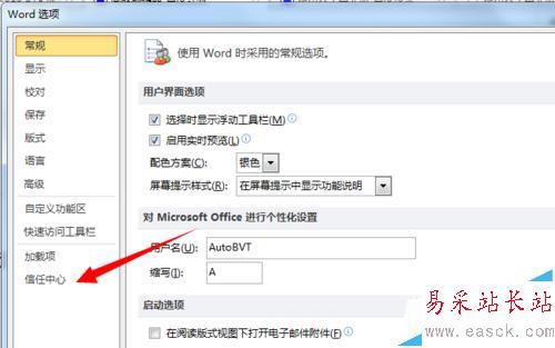 3、進(jìn)入Word選項(xiàng)中,在左方點(diǎn)擊打開【信任中心】選項(xiàng)